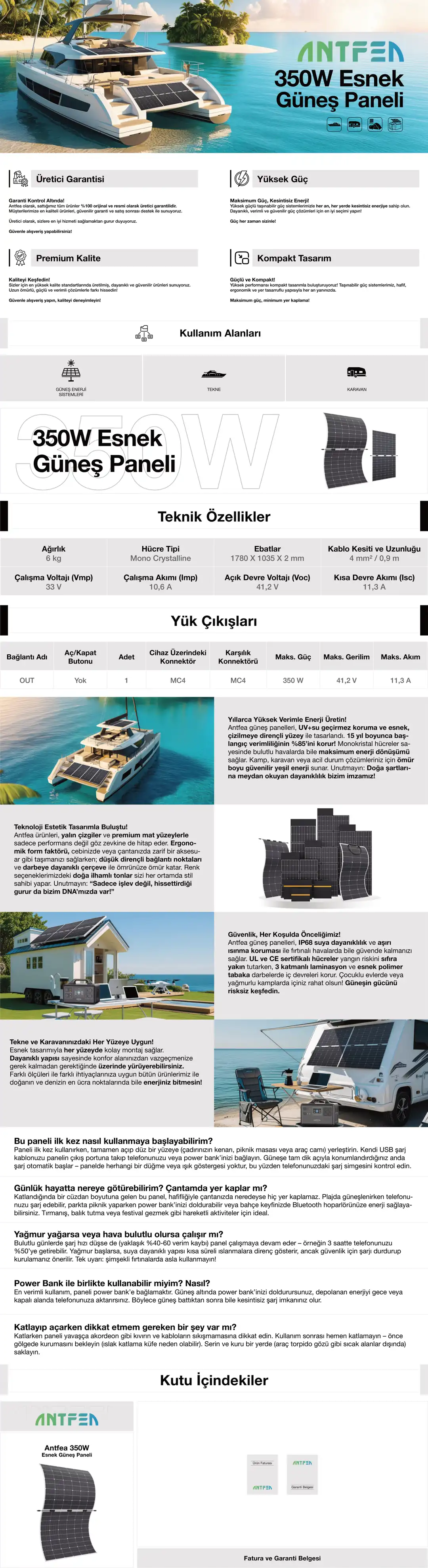 - Antfea 350W esnek güneş paneli: